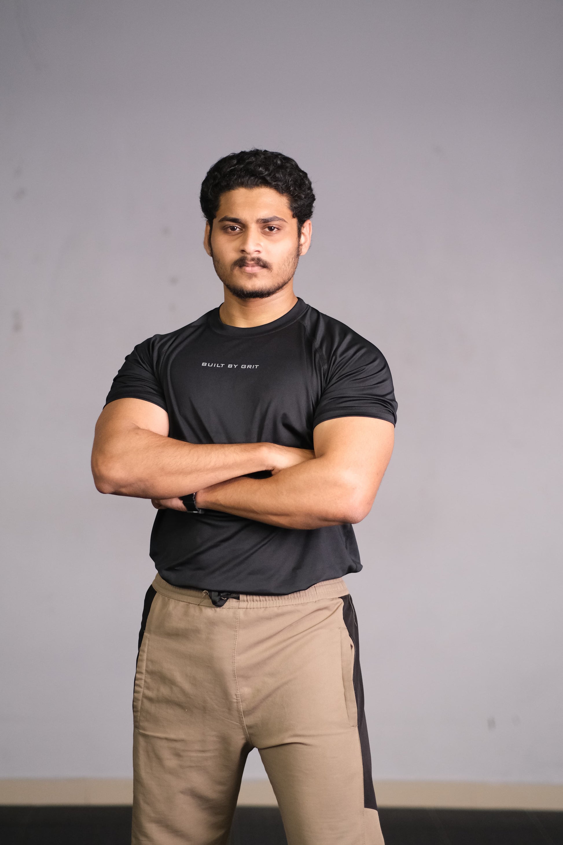 Engineer your output with this high-performance training tee, designed to bridge the gap between maximum mobility and essential visibility. Constructed from a premium technical blend of 93% Polyester and 7% Spandex, the fabric offers superior elasticity and lightweight durability while utilizing advanced moisture-wicking properties to keep you dry during peak exertion. The silhouette features an athletic raglan sleeve architecture that unlocks a full range of kinetic motion, ensuring zero restriction during intense workouts. For low-light safety and visual impact, the design is integrated with high-visibility reflective details, showcasing the signature "Built By Grit" text on the chest and a reflective logo positioned at the back neck.